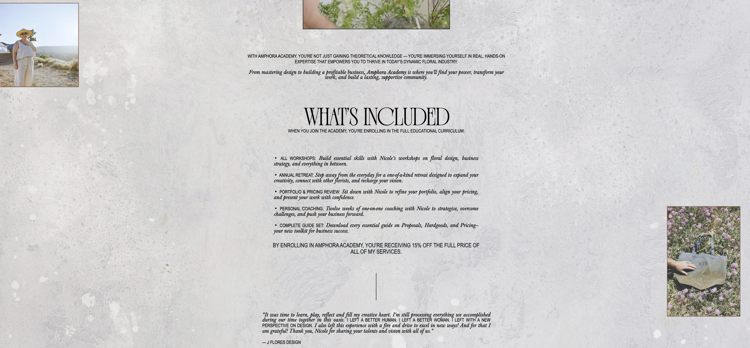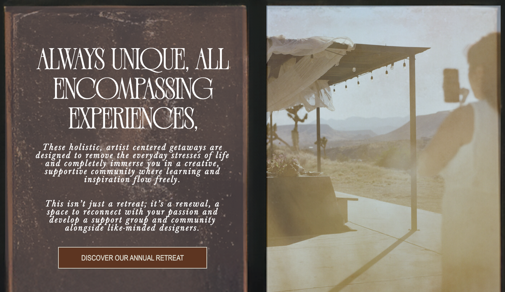 Nicole integrated these behind the scene images into her sites beautifully. The mix of gritty process and polished editorial shots layered with Nicole’s affinity for textures are evocative of her style, the high key dry desert place, and the mood of her luxury retreat workshop.